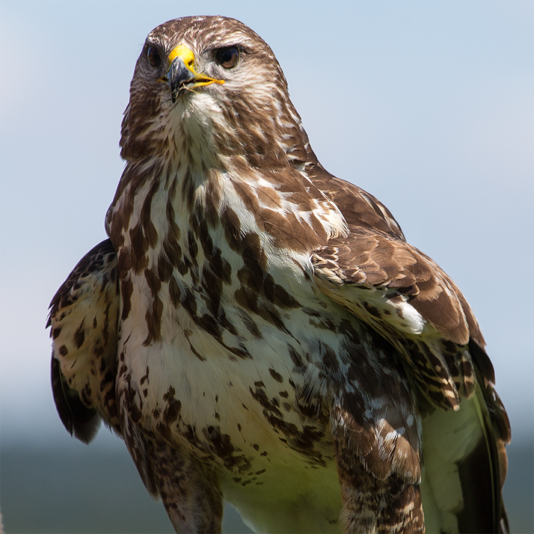 La buse de Harris (Parabuteo uncinatus) et la buse à queue rousse (Buteo jamaicensis) sont deux rapaces américains robustes et très populaires parmi les fauconniers. Ce sont des oiseaux remarquablement intelligents avec un mode de chasse social chez la buse de Harris. Très polyvalents, ils s'accommodent d'un entretien relativement facile.