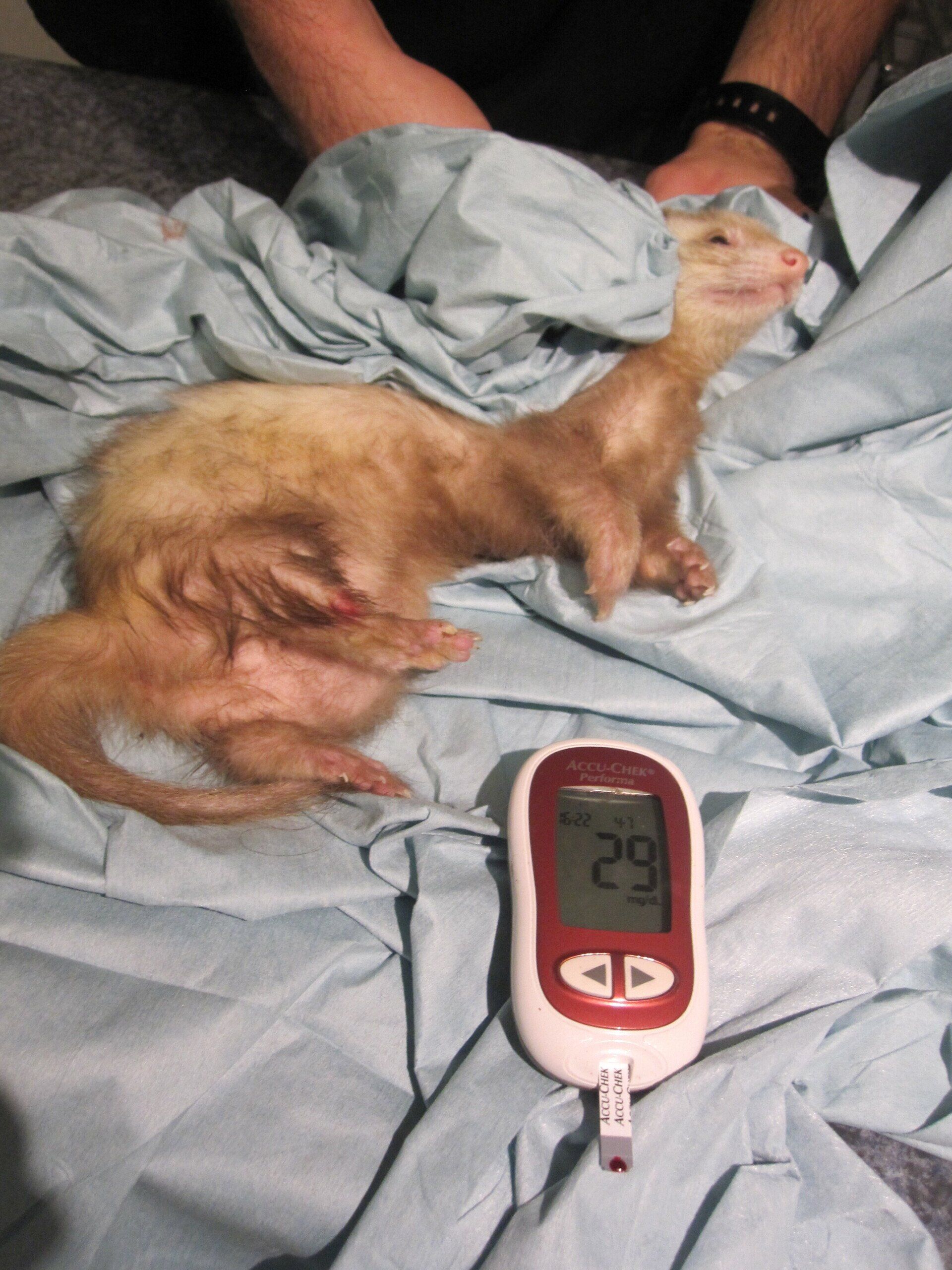 Il existe de nombreuses particularités chez le furet comparé aux carnivores domestiques. Les causes tumorales (insulinome et lymphome) sont très prédominantes mais des maladies rares (myasthénie, botulisme,etc...) sont également possibles.