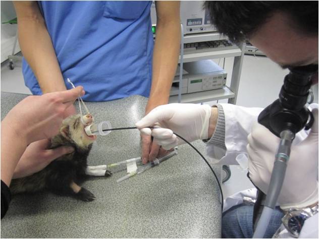 Pignon, C., Huynh, M., Husnik, R. & Jekl, V. Flexible Gastrointestinal Endoscopy in Ferrets (Mustela putorius furo). Vet Clin North Am Exot Anim Pract 18, 369-400, doi:10.1016/j.cvex.2015.05.002 (2015).