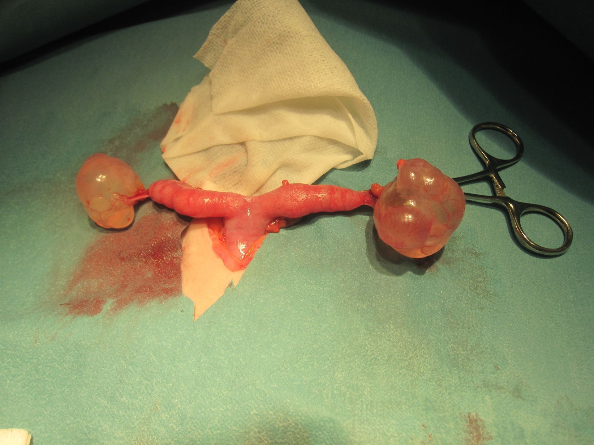 Le diagnostic se fait par échographie. Le traitement est chirurgical. Une technique d'ovariectomie par les flancs est généralement préférée en l'absence de tumeur utérine, elle est de bon pronostic.