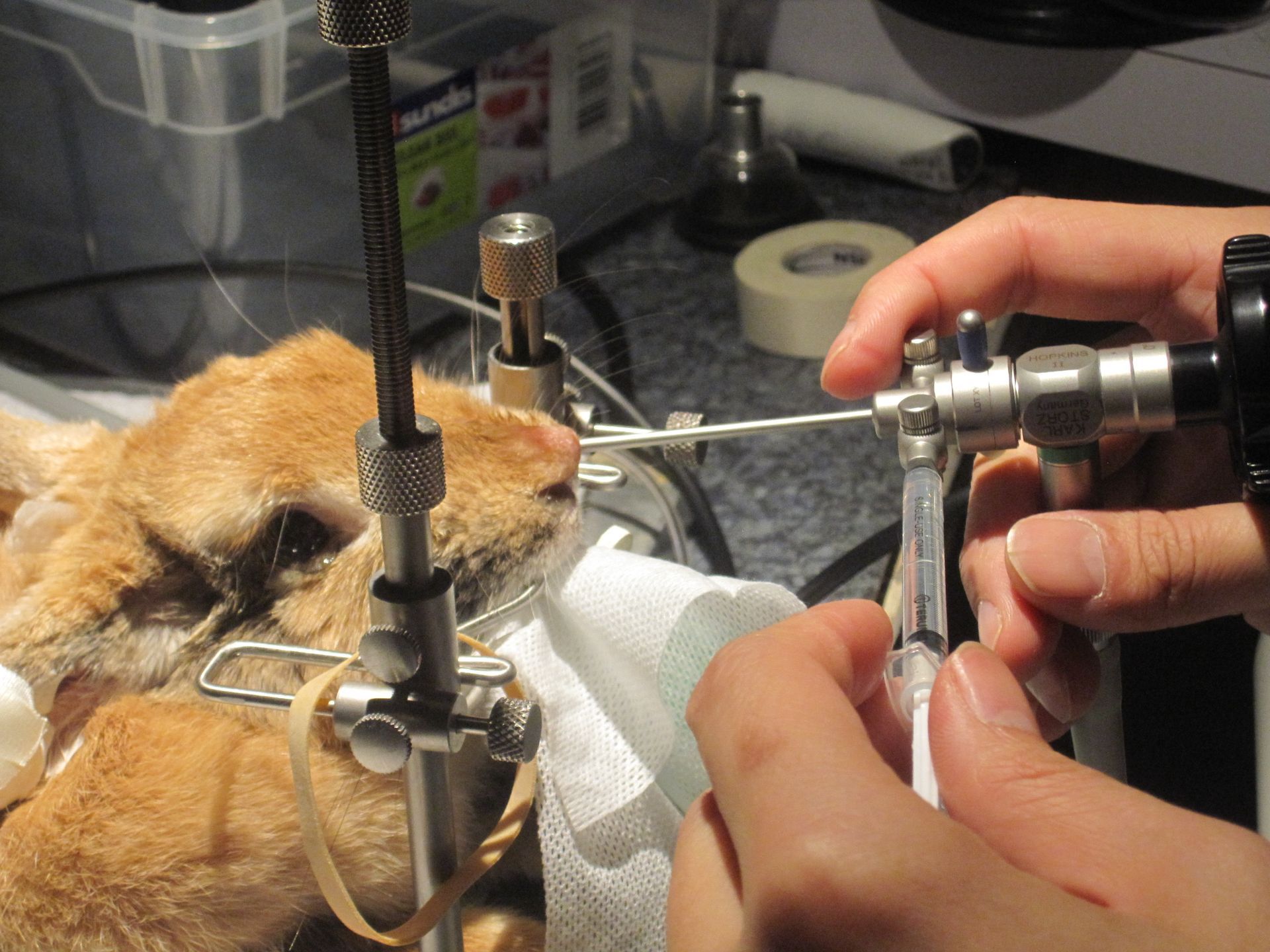 On distingue les otites externes qui affectent le pavillon auriculaire externe, les otites moyennes qui concernent la partie osseuse de l'oreille (bulle tympanique) et qui se situe sous le tympan (donc non visible extérieurement) et les otites internes (organe de l'équilibre). L'observation se fait préférentiellement par endoscopie ou otoscopie. Le diagnostic d'otite moyenne se fait à l'aide d'un scanner ou un IRM préférentiellement. En fonction de l'atteinte considérée, plusieurs techniques chirurgicales peuvent être recommandées pour permettre la vidange des bulles tympaniques (bullotomie ventrale, PECALBO ou chirurgie d'abaissement du conduit auriculaire). Des techniques endoscopiques sont également possible pour aborder la bulle tympanique (myringotomie).