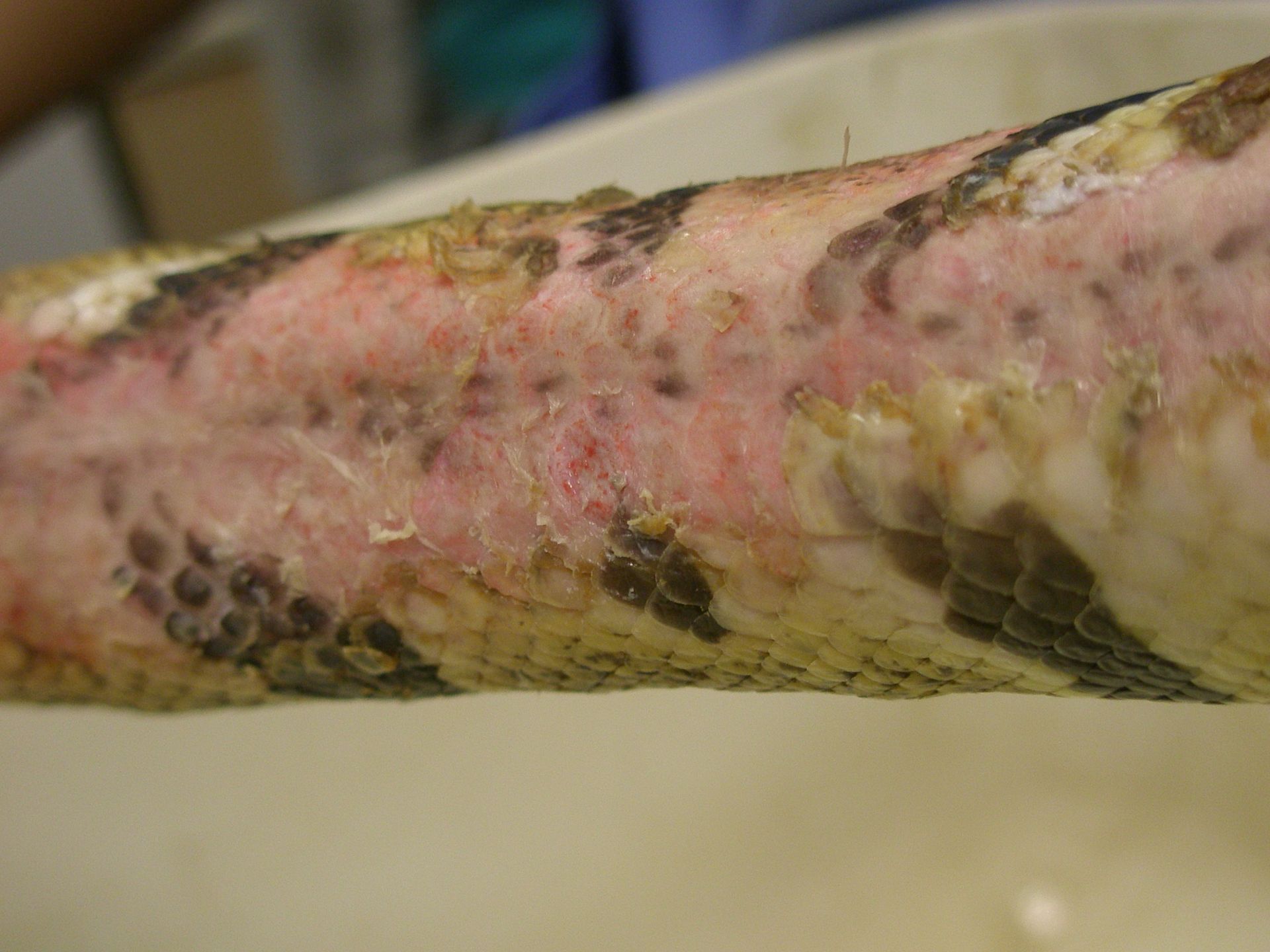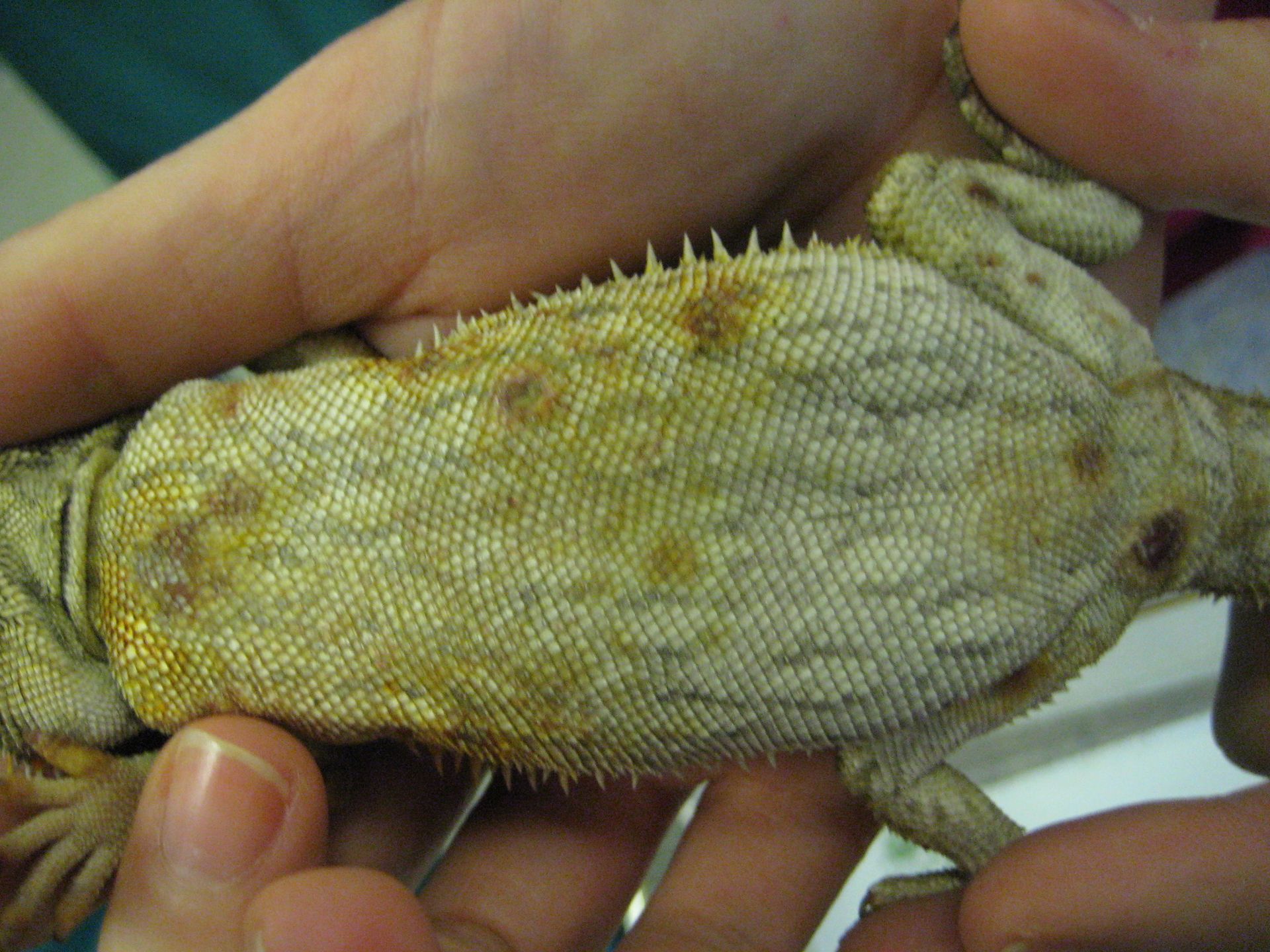 Les lésions de la peau sont fréquentes chez les reptiles que ce soit des brulures ou des maladies de peau (rougeurs, tâches noires). Seul des examens diagnostiques approfondis permettent de mettre en place un traitement adapté.